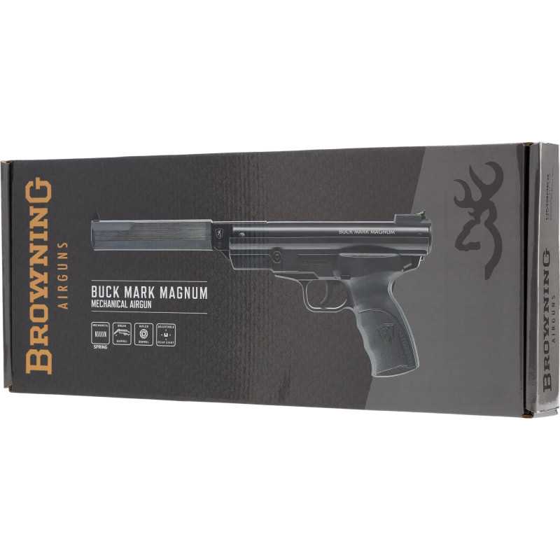 Browning Buck Mark Magnum je kakovostna vzmetna zračna pištola, zasnovana po vzoru ene najbolj priljubljenih malokalibrskih pištol na svetu. Navdušuje z odlično izdelavo, zanesljivim delovanjem in zelo dobro natančnostjo, zato je odlična izbira za rekreativno streljanje in trening.