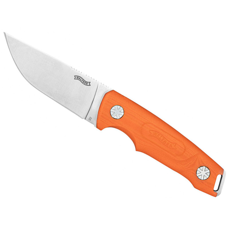 Nož Walther HBF 1, rezilo iz visoko odpornega jekla D2. Z svojo ergonomsko obliko ročaja, zagotavlja varen oprijem. Signalno oranžna barva zagotavlja, da se nož ne izgubi. Na ročaju je izmenljiva sponka za pas