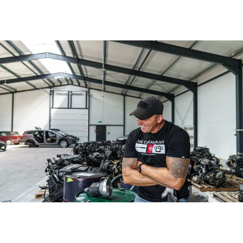 Cleaner Boy majica temelji na izrazitem grafičnem potisku, kjer napis “THE CLEANER BOY” in simboli moči ustvarja neizprosen vizualni učinek, jasno in brezkompromisno.
