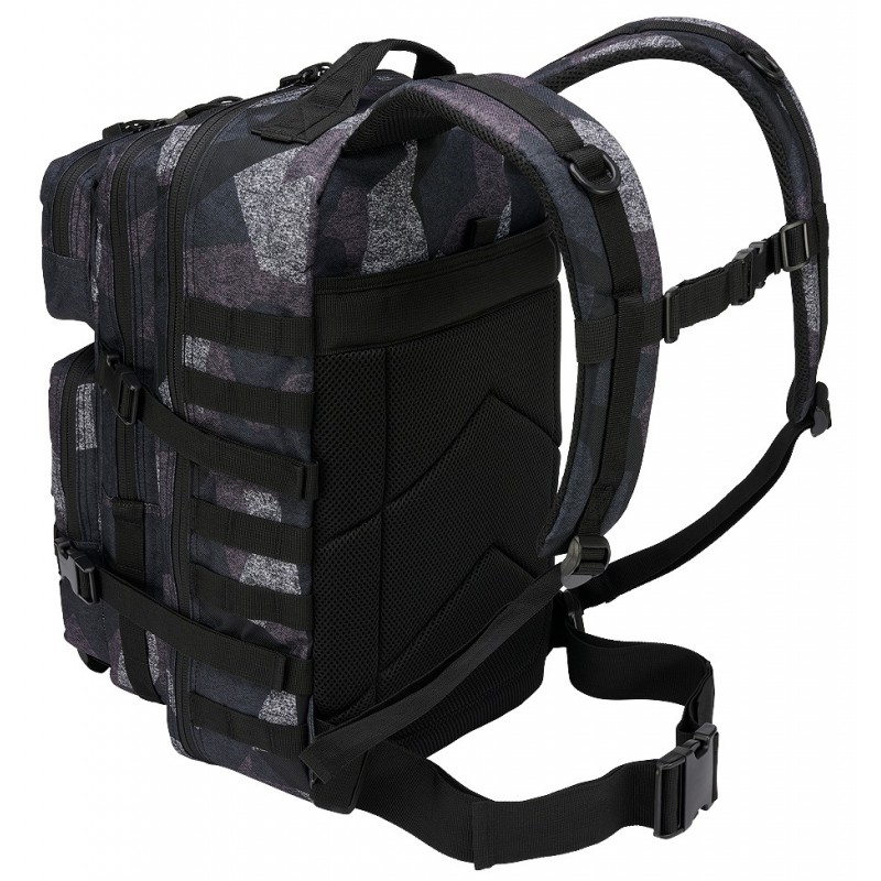 Prednost tega nahrbtnika pa so tudi številni integrirani Molle trakovi, kar pomeni, da lahko na nahrbtnik dodajate žepe po svoji želji in potrebi. Nahrbtnik ima tudi stranske sponke (kar vam bo koristilo v primeru, da nahrbtnik ni napolnjen) s katerimi lahko stisnete vsebino nahrbtnika in s tem optično zmanjšate nahrbtnik. Je tudi podložen z vodoodpornim materialom, zato ne bo problema tudi v mokrem vremenu.