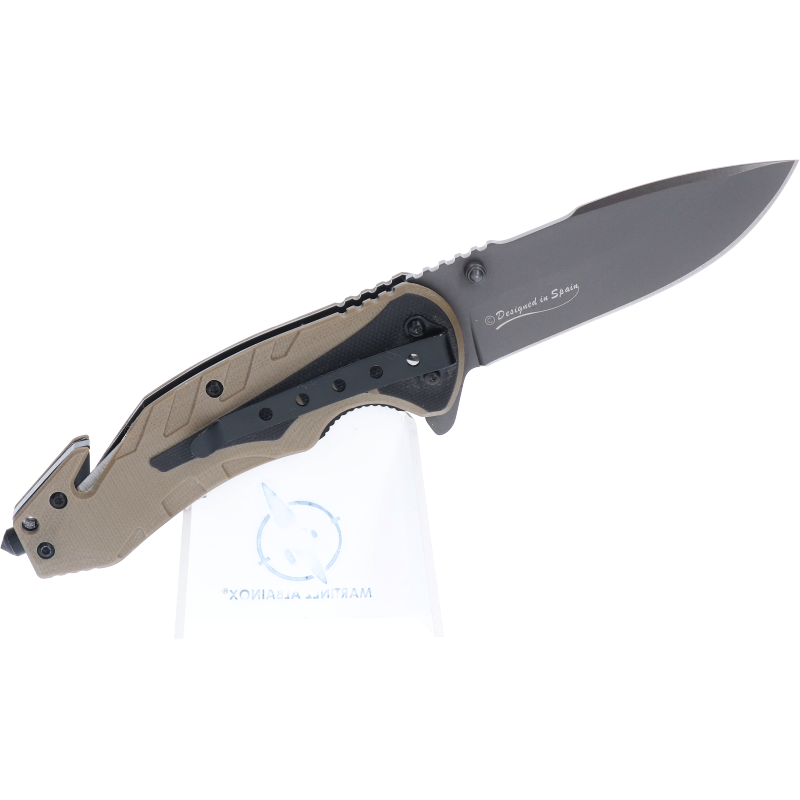 - Vgrajeni Orodji: Nož je opremljen z razbijalcem stekla iz volframovega karbida in dvema rezalcema za varnostne pasove, kar povečuje njegovo uporabnost v nujnih primerih.