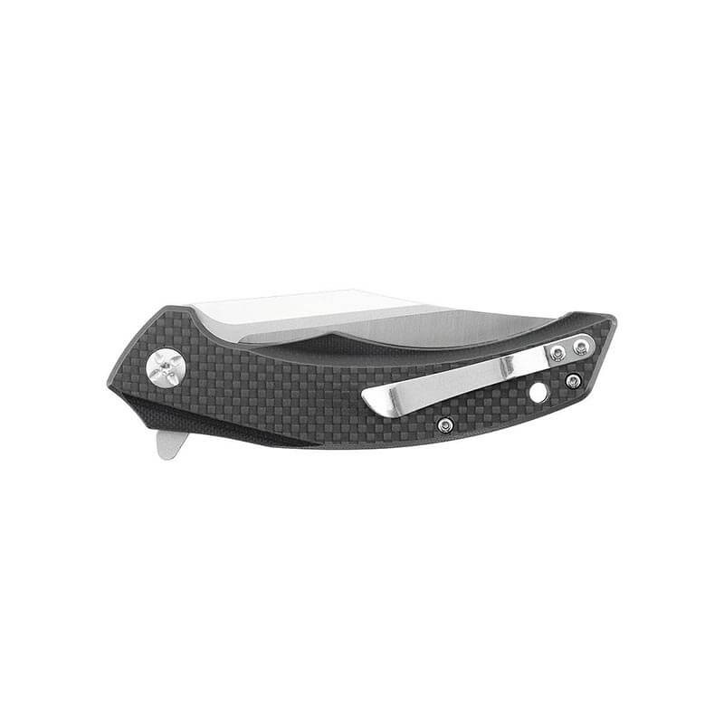 Poseben poudarek je na eleganten ročaj iz G10 in Carbon mixa, ki nudi trden in udoben oprijem ter modernejši tehnični videz. Žepna sponka omogoča enostavno nošenje in hitro dostopnost.