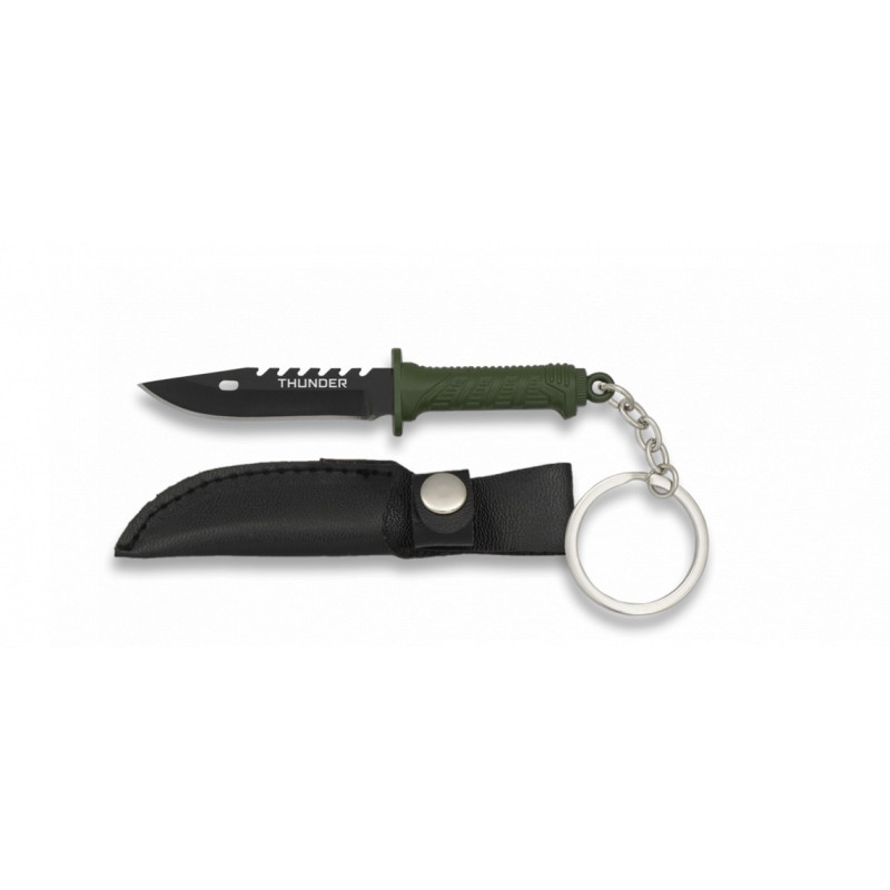 Obesek za ključe nož Thunder z usnjenim etuijem.