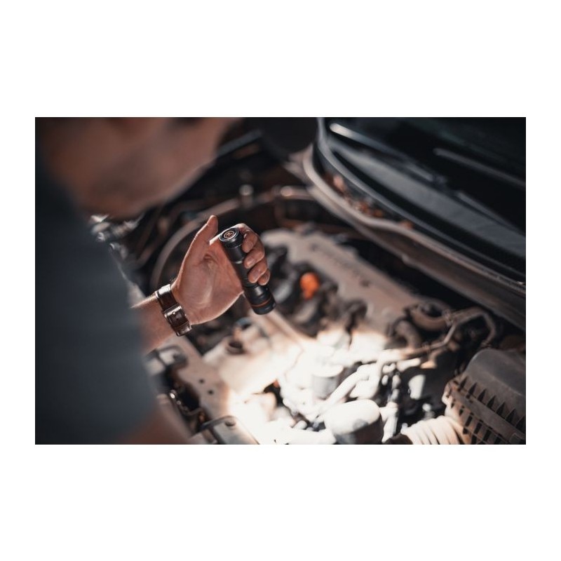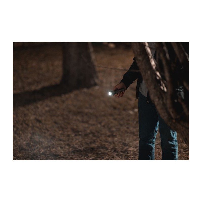 S priročno nameščenim stranskim stikalom lahko upravljate vse funkcije svetilke. Baterijo polnite preko mikro USB vhoda, da je svetilka napolnjena, pa vam pove modra lučka. Žepna sponka omogoča enostavno in varno namestitev svetilke na oblačila, pas, nahrbtnik ali celo na kapo s senčnikom. Močan magnetni spodnji del pa omogoča priročno prostoročno osvetlitev in tako je svetilka uporabna tudi kot delovna svetilka.