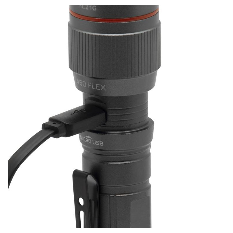 Nebo 450 Flex je kakovostna polnilna ročna taktična svetilka z Flex-Power tehnologijo, kar pomeni, da se lahko napaja s polnilno baterijo ali pa za delovanje lahko uporablja AA baterijo.