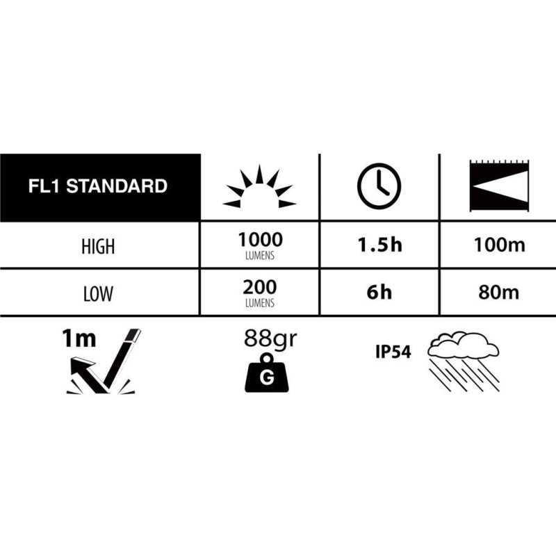 DH1000R združuje izjemno moč in široko paleto funkcij, ki zagotavljajo zanesljivo delovanje v temnih in zahtevnih okoljih. Z največjo svetilnostjo do 1000 lumnov nudi močno in jasno osvetlitev, fiksni usmerjeni (spot) ter široki (flood) snop pa omogočata tako natančno osvetljevanje posameznih točk kot tudi enakomerno razpršeno svetlobo na večjih površinah.