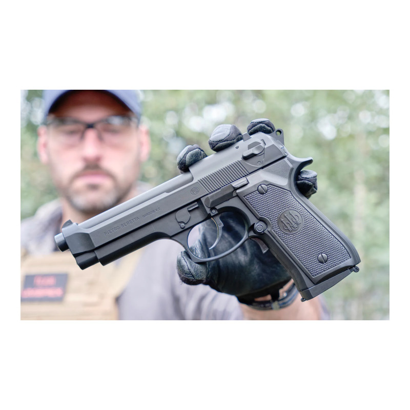 - Realistična vzmetna replika znamenite vojaške pištole Beretta