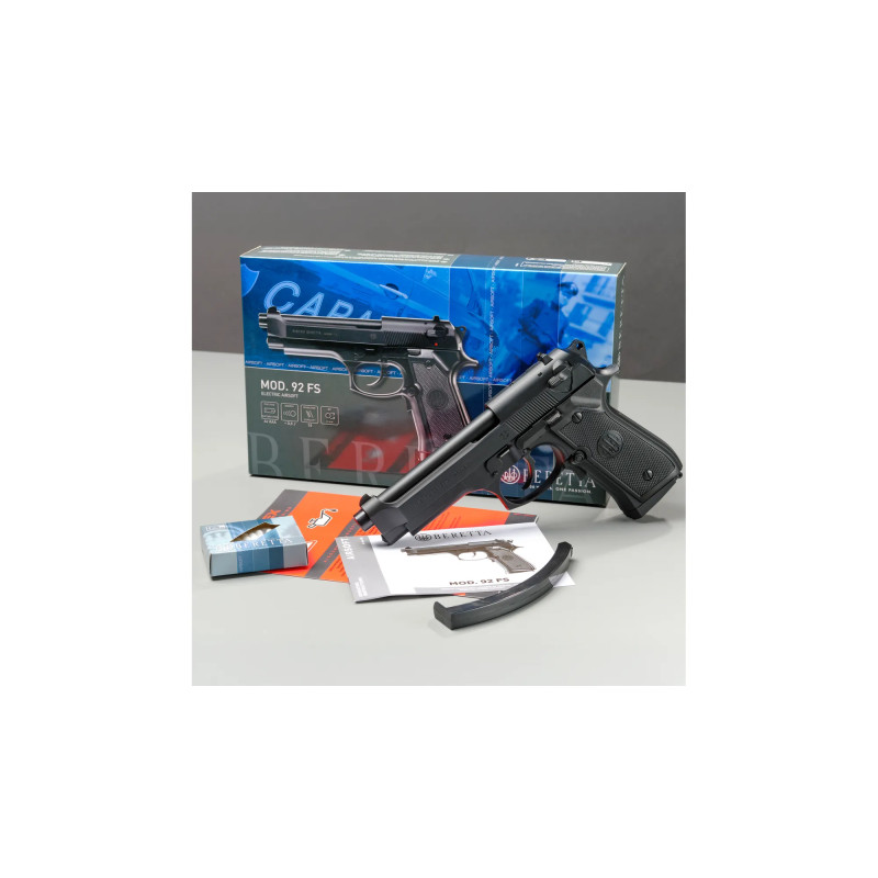 Vzmetna električna airsoft replika Beretta Mod. 92. ima kovinski zaklep in je identična replika slavne Berette M92.